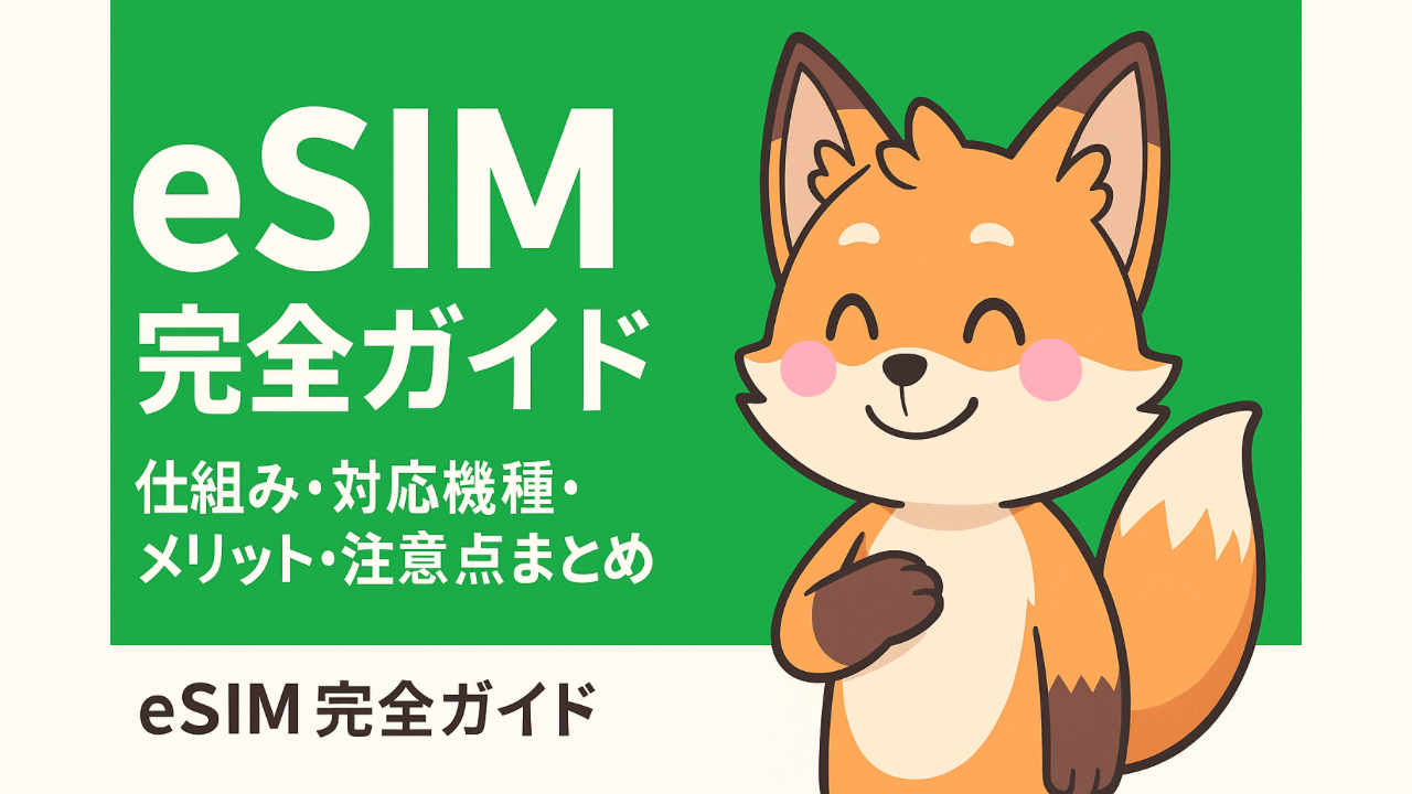 eSIM 完全ガイド|仕組み・対応機種・メリット・注意点まとめ 🦊 やっほ〜、シグナルくんだよ! この記事では、スマホの契約で主流になりつつある 「eSIM」 について、初心者向けに分かりやすく解説していくよ。 eSIMってどういう仕組み? 物理SIMとの違い...